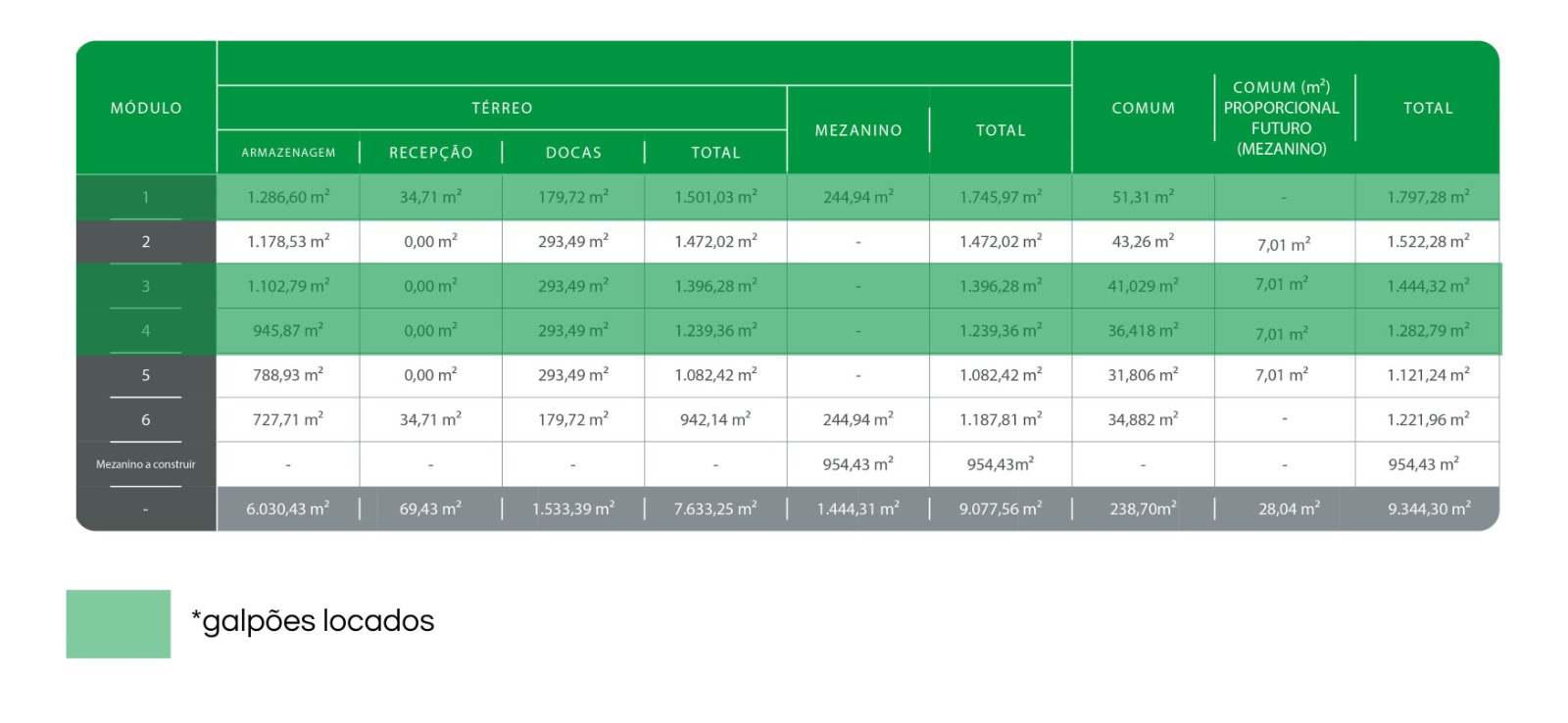 Flexibilidade de metragem com área total de 9.344,30 m².